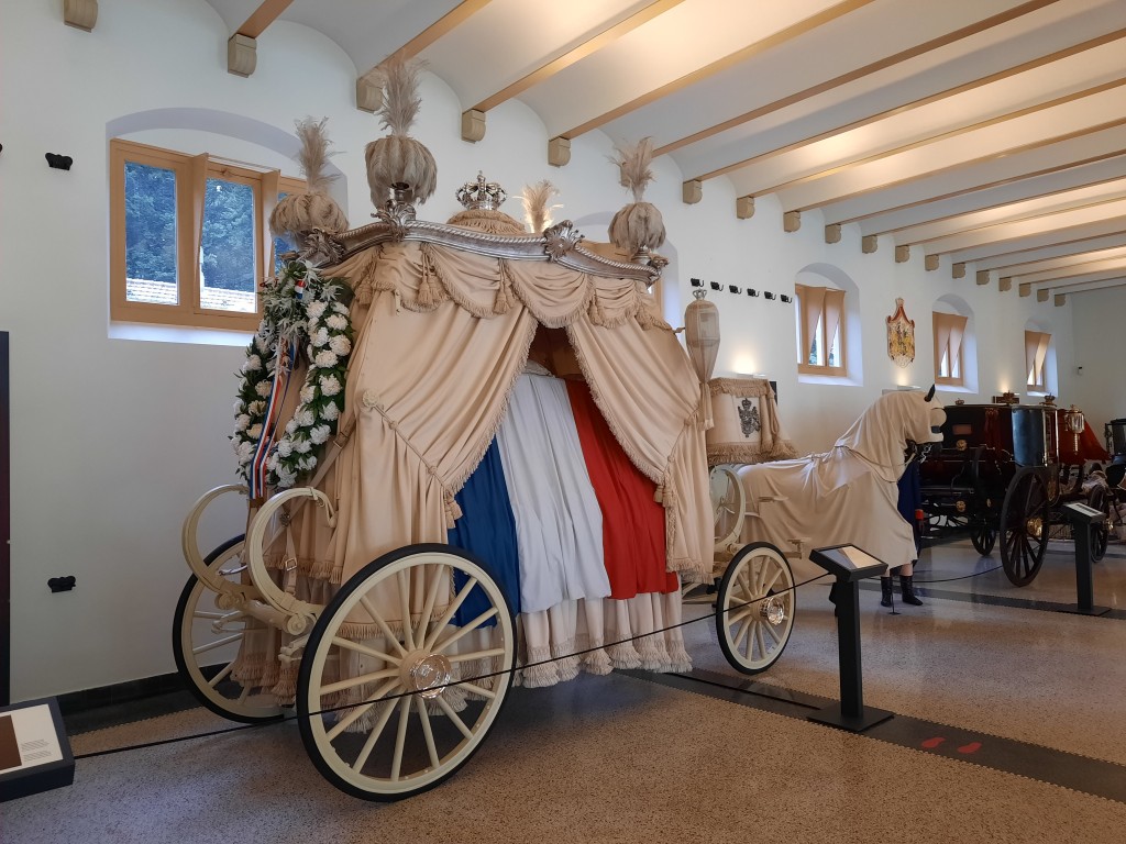 Na zpáteční cestě jsme si prošli již zmíněné stáje, kde už neměli žádné koně, ale různé kočáry, vozy a auta, která používala královská rodina v minulých staletích.