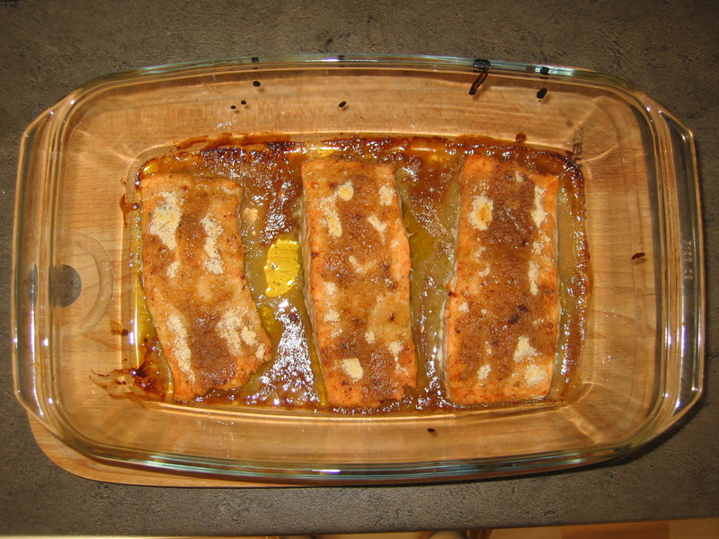 krustičku, ale asi jsem to přehnala se zbylou marinádou, kterou jsem lososa
