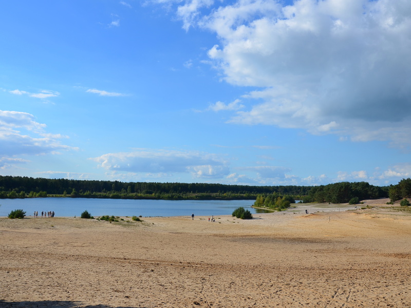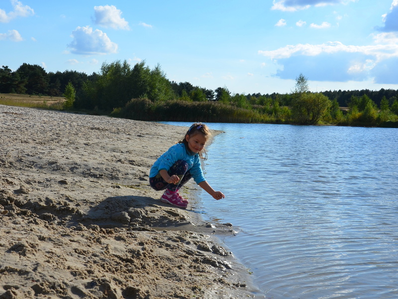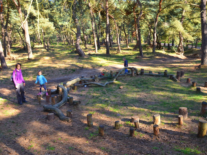 Po příjezdu do Lommelu jsme zašli do infocentra, které sousedí s muzeem skla (GlazenHuis). Bohužel jsme se dozvěděli, že v muzeu zrovna předělávají expozici, a tak bylo zavřené a tím i náš první úlovek – skleněná rozhledna. Co naplat, prošli jsme rychle náměstí a autem se poté přesunuli o kus dál k parkovišti poblíž „sahary“. „Náhodou“ tam bylo krásné dětské hřiště, ale jako obvykle jsme návštěvu podmínili nejdříve výletem do lesa, fůůůjjj (už nám to začíná). Prošli jsme kolem architektonicky zajímavé haly Internationale Taptoe Belgie, dále kolem skautské vesnice a byli jsme konečně v lese. Šli jsme po turistické cestě vedoucí cik-cak přes různé zajímavosti (proutěné obydlí, tunely, dřevěného hada, …) až jsme vyšli na pískové duně u první nádrže.